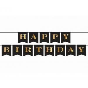 GIRLANDA PAPIEROWA HAPPY BIRTHDAY CZARNO ZŁOTA