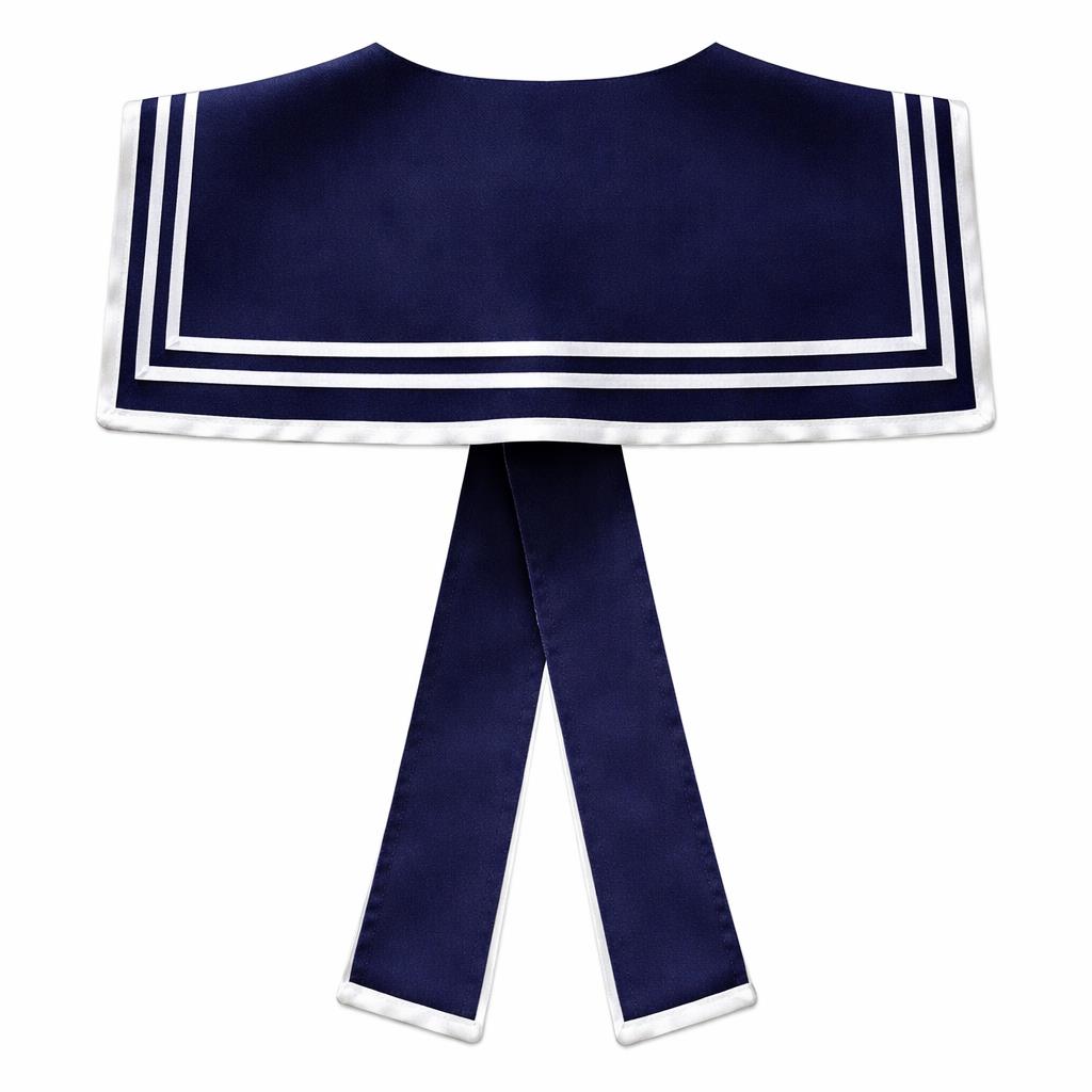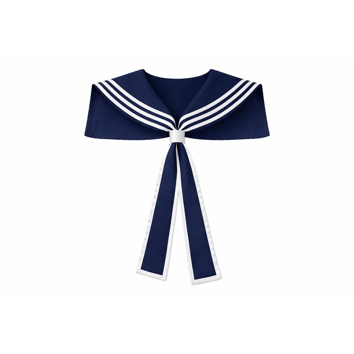Elegancki kołnierz marynarski w kolorze granatowym, stworzony z wysokiej jakości materiału, ozdobiony subtelną białą tasiemką, to doskonały dodatek zarówno dla dzieci, jak i dorosłych. Jego uniwersalny design sprawia, że idealnie pasuje do stylizacji zarówno dla dziewczynek, jak i chłopców.