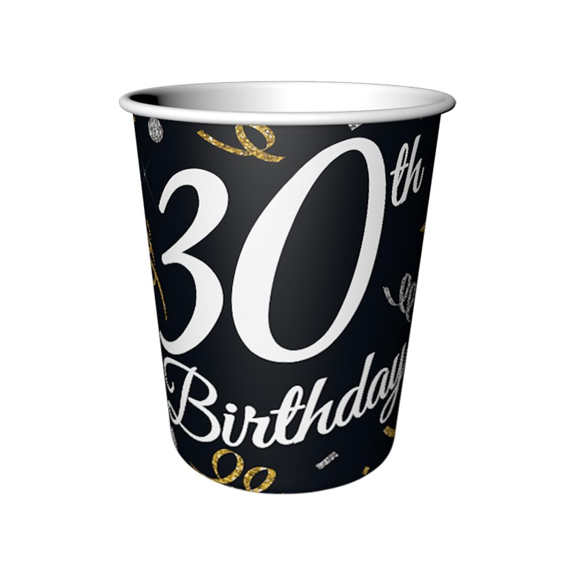 KUBECZKI PAPIEROWE 30-TE URODZINY CZARNE 6szt.-7174