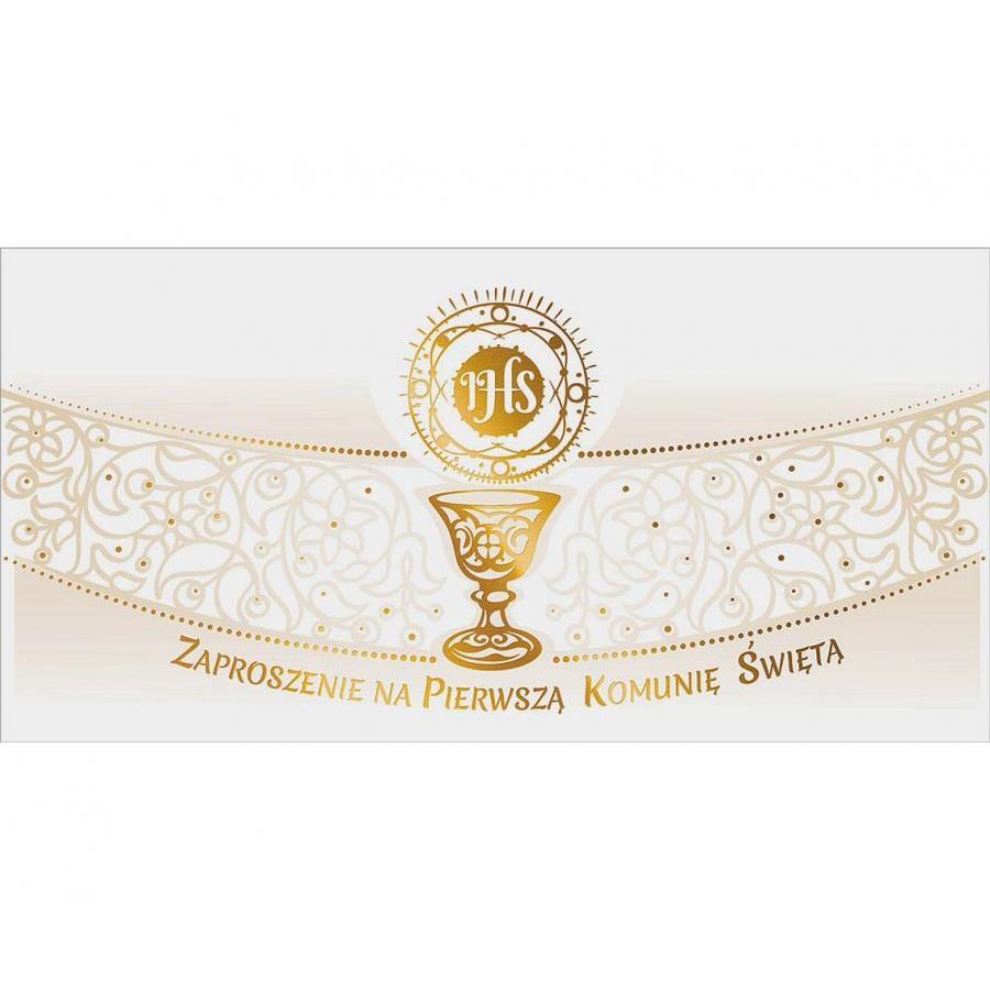 Zaproszenie Pierwsza Komunia Święta, złota, 10 szt