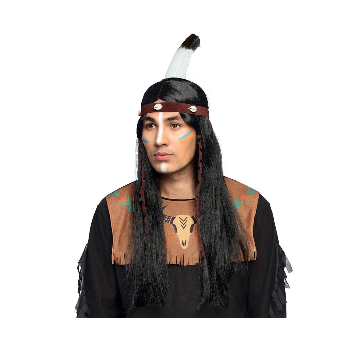Peruka Indianina Takoda, czarne włosy z opaską