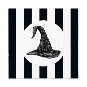 SERWETKI PAPIEROWE HALLOWEEN, BIAŁO-CZARNE KAPELUSZ