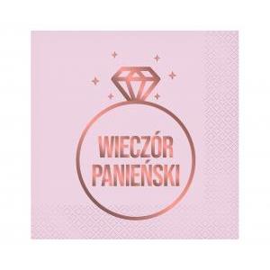 Serwetki papierowe na wieczór panieński w kolorze różowym to doskonały dodatek do każdej imprezy. Oferowane w wygodnym rozmiarze 33 x 33 cm, idealnie sprawdzą się podczas serwowania przekąsek czy napojów. W każdym opakowaniu znajduje się 20 wysokiej jakości serwetek, które zdobi piękny nadruk pierścionka, symbolizujący nadchodzące zmiany w życiu przyszłej panny młodej. Produkowane przez renomowaną firmę Godan S.A., te papierowe serwetki łączą estetykę z funkcjonalnością, zapewniając Twoim gościom niezapomniane chwile. Wybierz je na swój wieczór panieński i stwórz wyjątkową atmosferę, której nie zapomną!