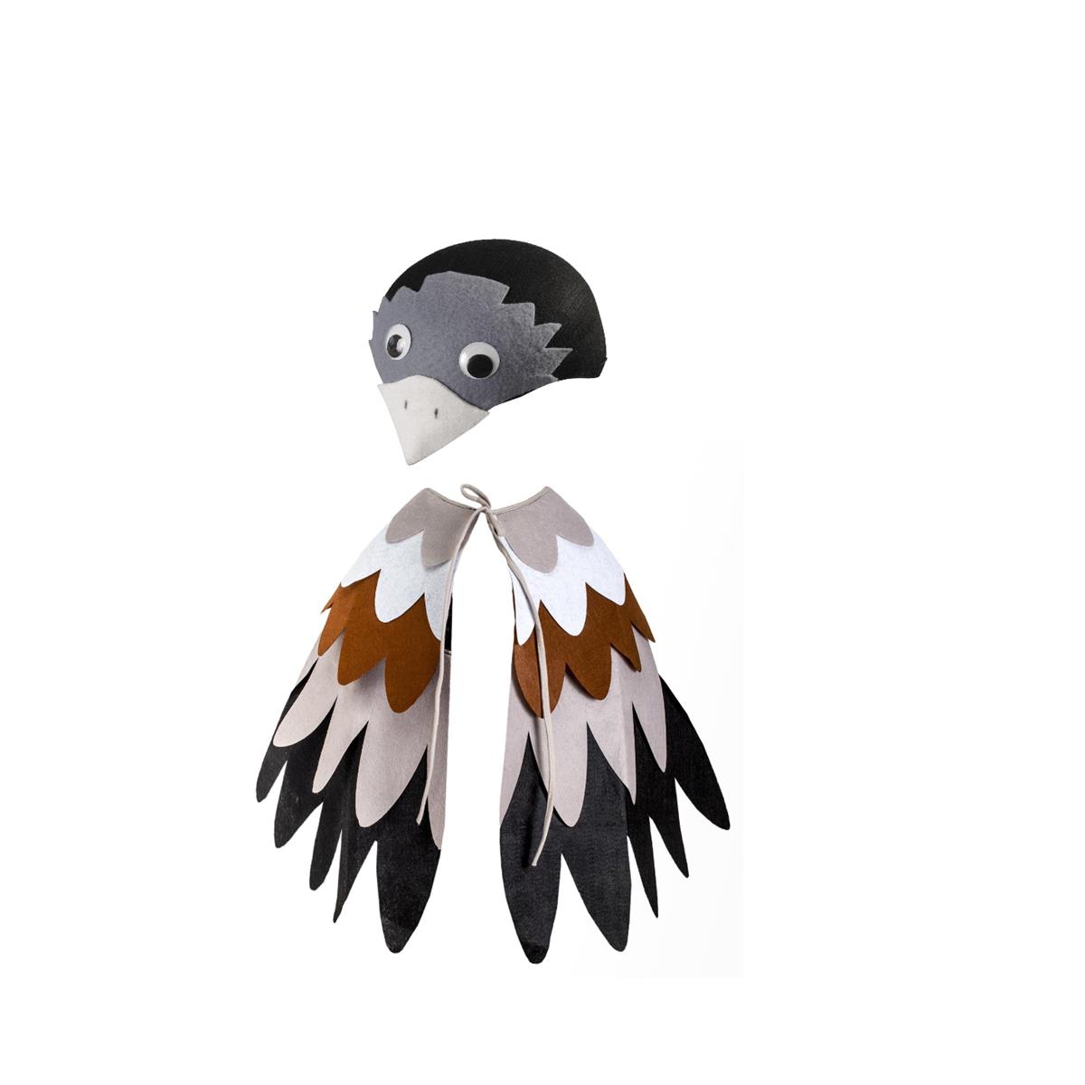Peleryn wróbel, gołąb, orzeł, sowa itp, wiązana pod szyją. Pelerynka w formie dwóch skrzydeł, na każdym skrzydle po wewnętrznej stronie jest przyszyta gumeczka do założenia na ręce, dzięki czemu przy każdym ruchu ręki ruszają się skrzydła.